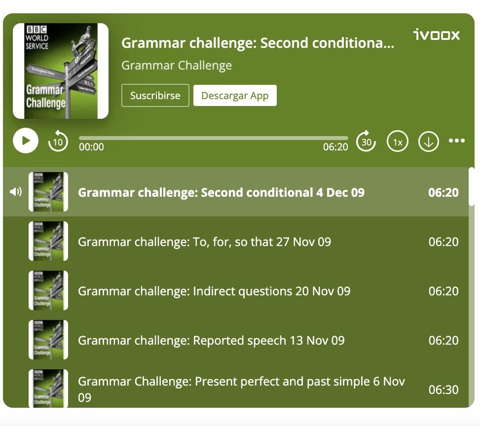 Otro podcast de la BBC en el que cada episodio propone un documento que con las reglas gramaticales que se deben aprender, así como ejercicios que se pueden descargar desde la web en formato PDF.