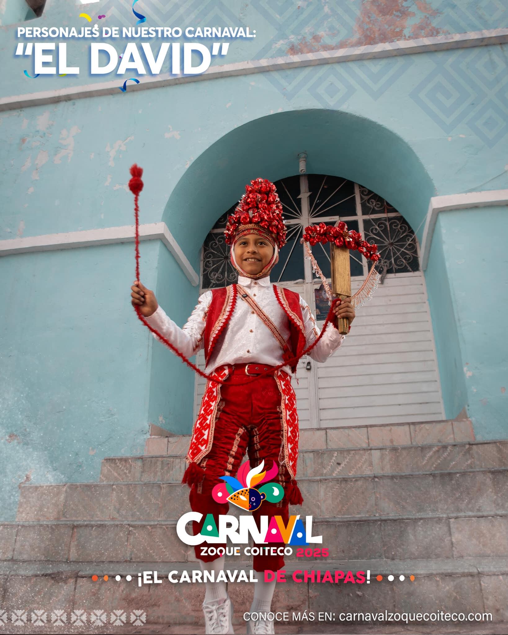 - El David: Representa la victoria del bien sobre el mal, el personaje es un símbolo de la lucha de los valores tradicionales zoques. Es una figura que se enfrenta a los desafíos, tanto en la simbología religiosa (David contra Goliat) como en las tradiciones orales.
