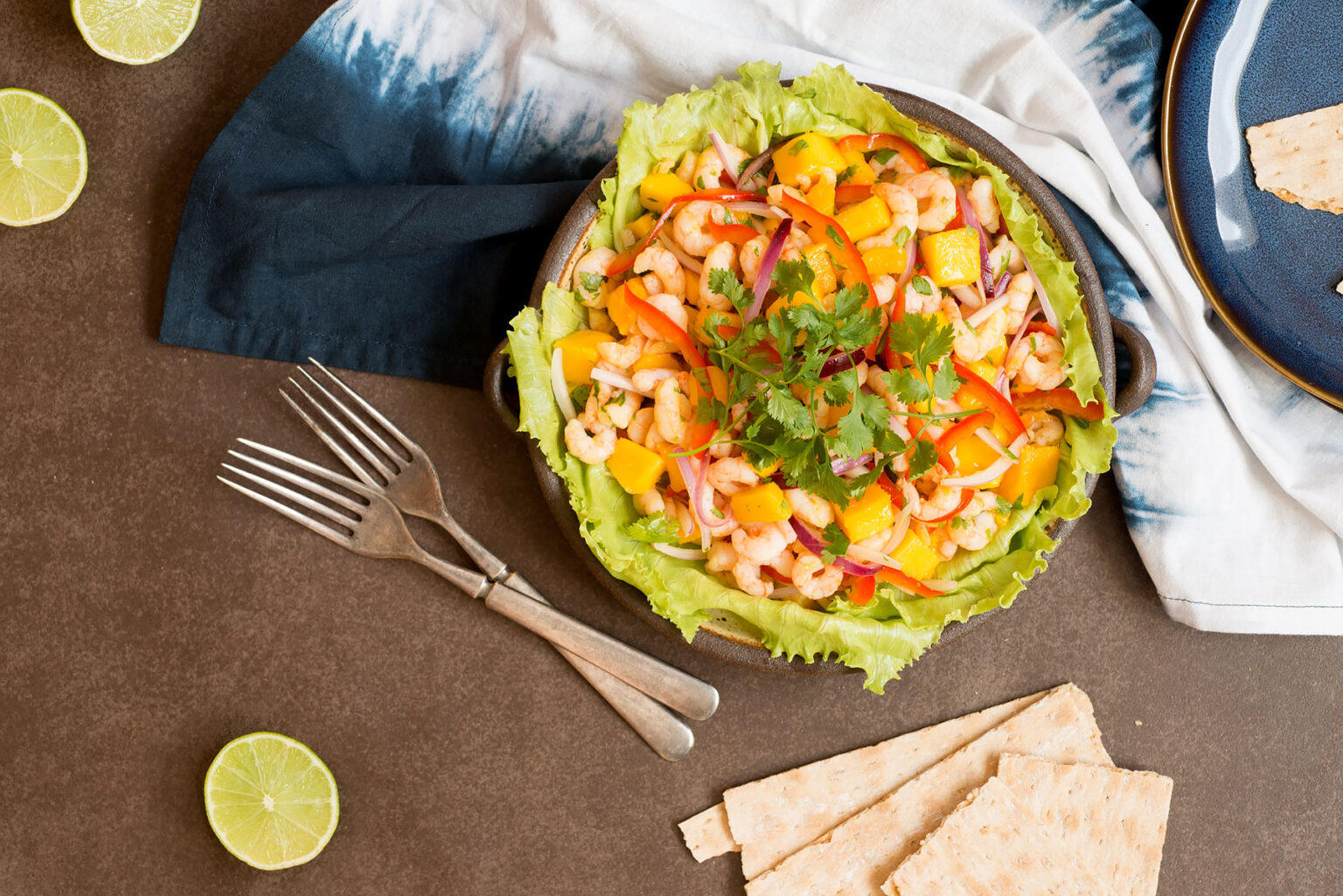 - Ceviche de camarones y mango