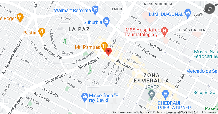 - 📍 Dirección: Gral. Porfirio Díaz 835, Adolfo López Mateos, 72240 Heroica Puebla de Zaragoza, Pue., México