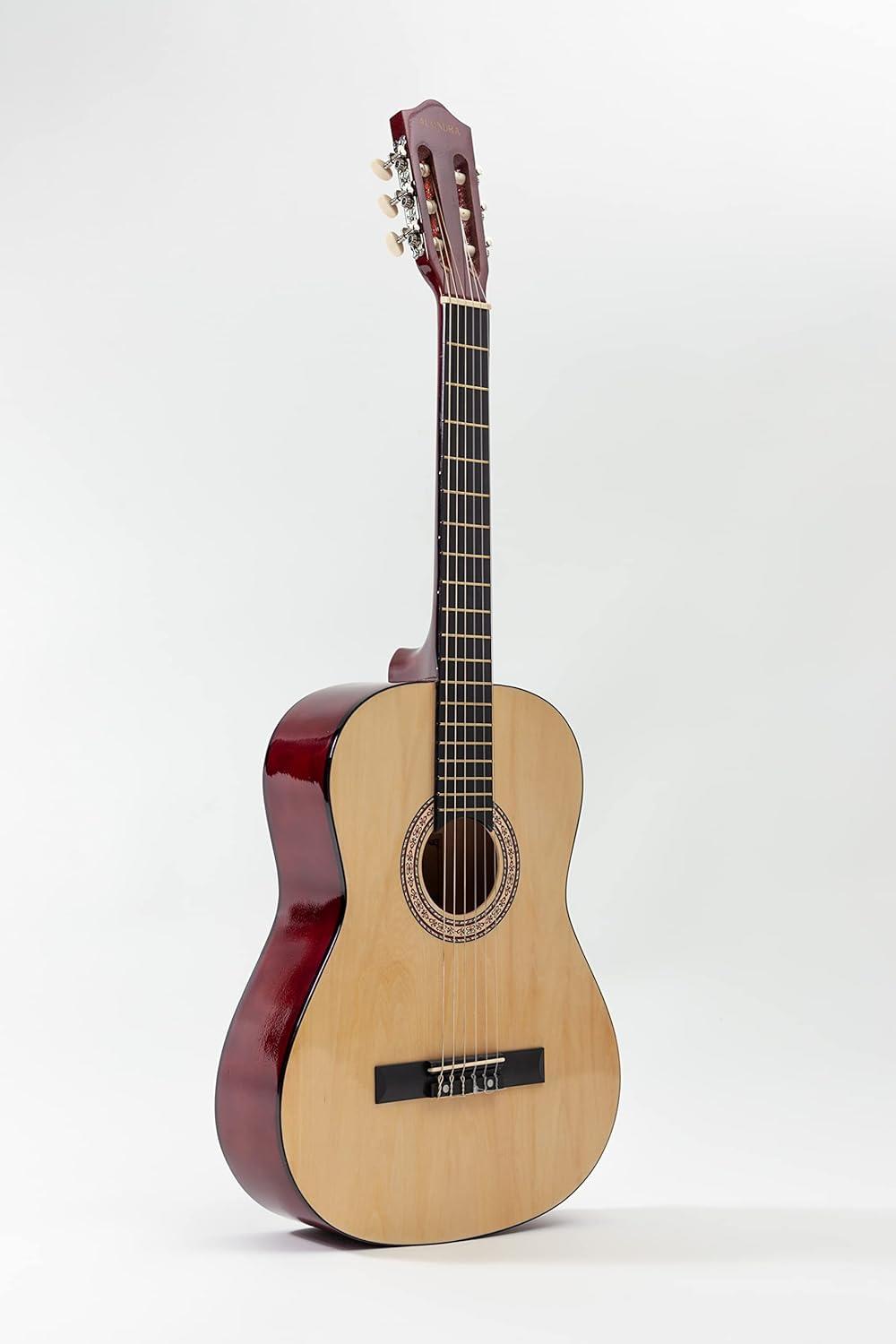 Esta guitarra tiene cuerdas de nylon, y por lo general tiene un sonido cálido y equilibrado. Ideal para practicar escalas, arpegios y piezas clásicas.