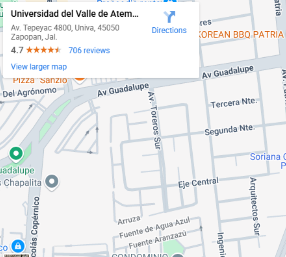 - Ubicación: Av. Tepeyac 4800, Univa, 45050 Zapopan, Jal., México