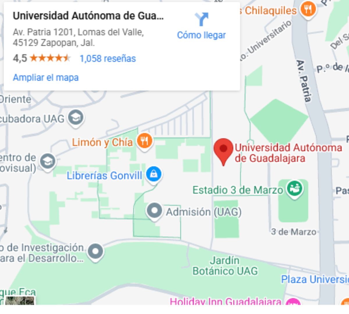 - Dirección: Av. Patria 1201, Lomas del Valle, C.P. 45129 Zapopan, Jalisco, México.