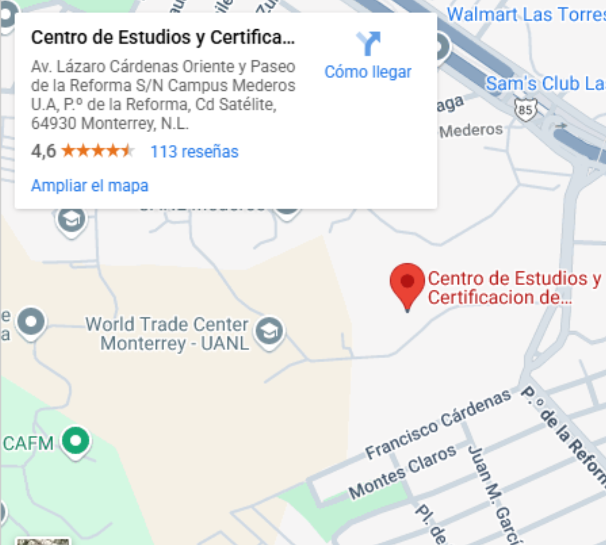 - Dirección: Av. Lázaro Cárdenas Oriente y Paseo de la Reforma S/N Campus Mederos U.A, P.º de la Reforma, Cd Satélite, 64930 Monterrey, N.L.