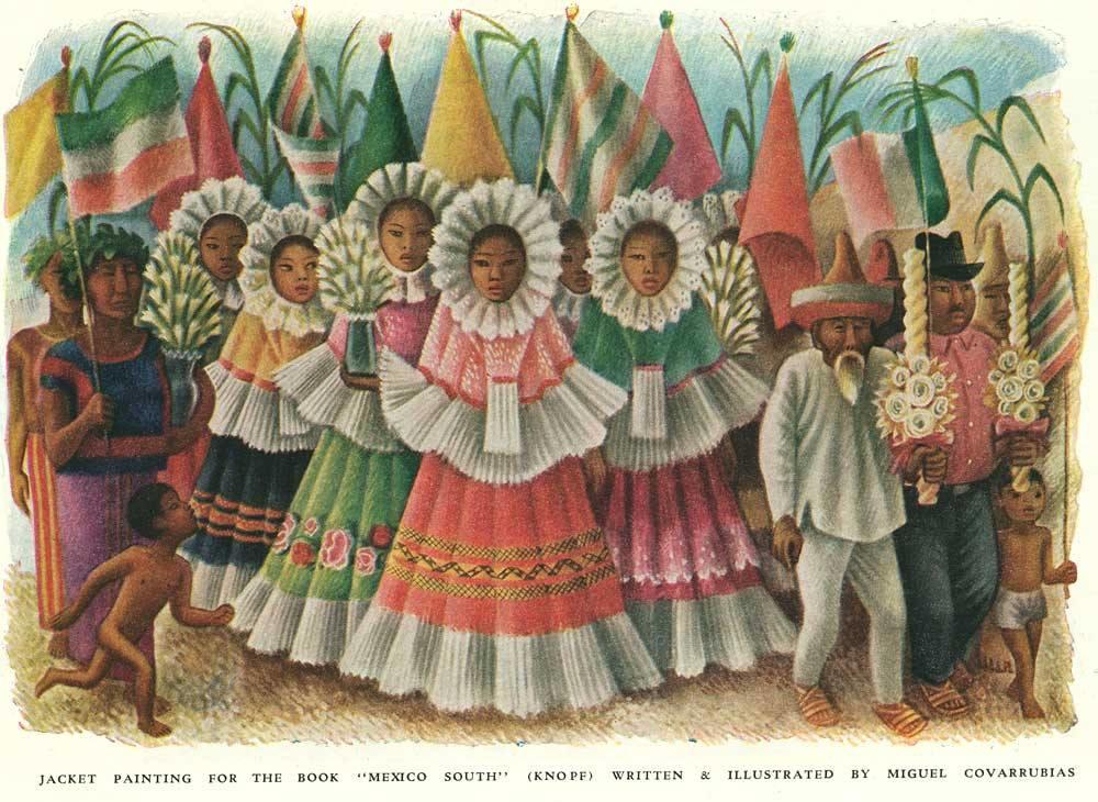 Obras como "Young tehuanas carrying flowers" (Jóvenes tehuanas llevando flores) muestran las obsesiones que guardaba Miguel Covarrubias y que exponía en su arte: el interés por las culturas mexicanas, pero también de otras latitudes del mundo.