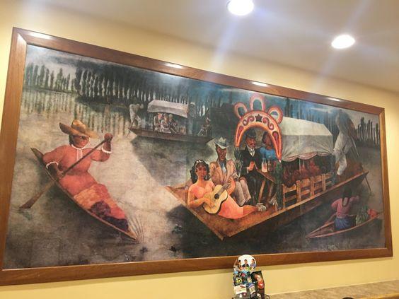 "Una tarde de domingo en Xochimilco" se encuentra en el Vips Madero de la Ciudad de México. La figura central del mural es una pareja, en donde la mujer está tocando una guitarra, y en trajinera de atrás se encuentran unos turistas gringos tomando fotos. Este mural es interesante porque en realidad es una réplica, el original se encuentra perdido, algunos creen que está guardado en el Instituto Nacional de Bellas Artes y Literatura (INBAL), mientras otros aseguran que lo compró un coleccionista de Nueva York.