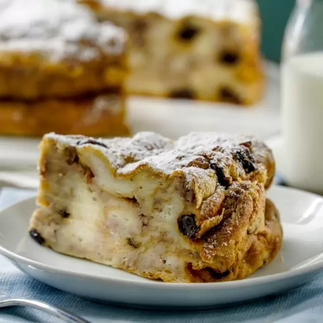 El budín o pudding de pan es un postre tradicional inglés que se suele servir en Navidad. Se elabora con pan duro, leche, huevos, azúcar y especias, y se puede servir con helado.