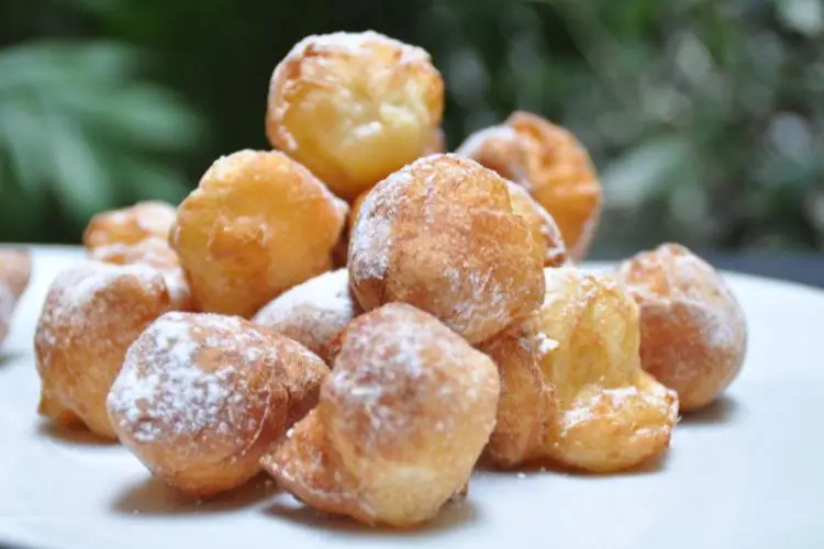 Finalmente, espolvorea los buñuelos con azúcar glas y sirve inmediatamente. Los buñuelos de aire son mejores calientes.