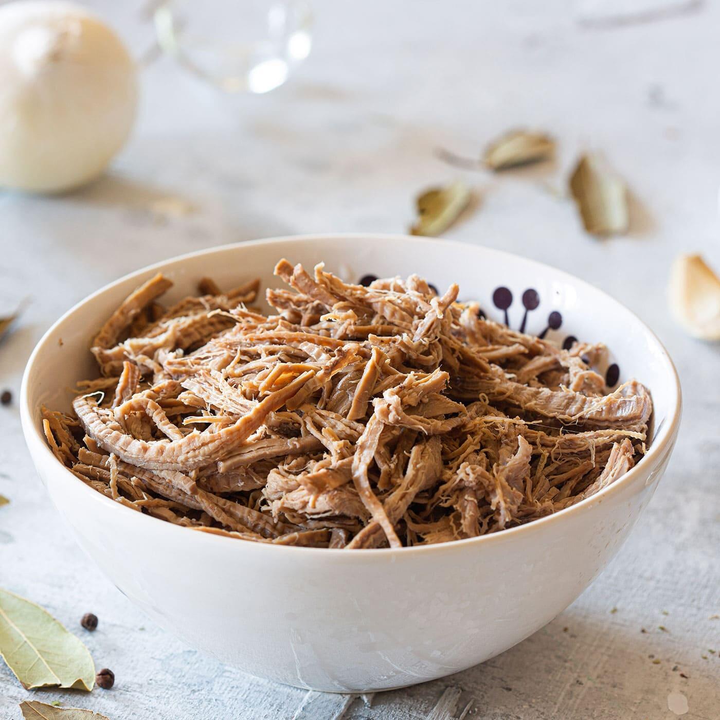 - 500 g de carne de res cocida y deshebrada (falda o pecho)