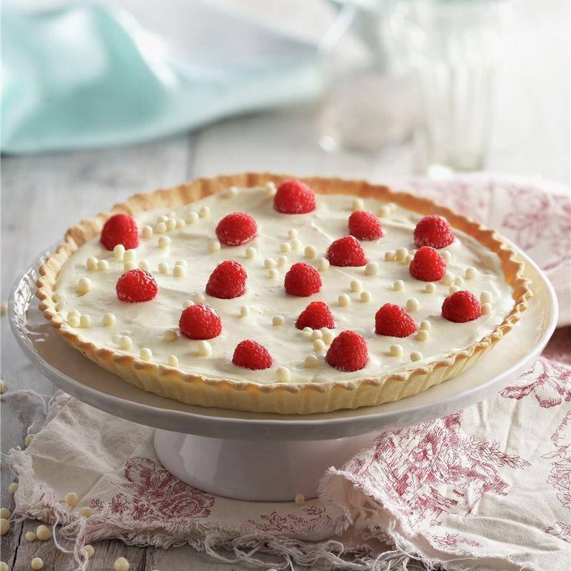 La base de la tarta está hecha de solo 3 ingredientes y el relleno requiere sólo 4 ingredientes más. En un abrir y cerrar de ojos tendrás preparada esta rica tarta de chocolate blanco y frambuesas.