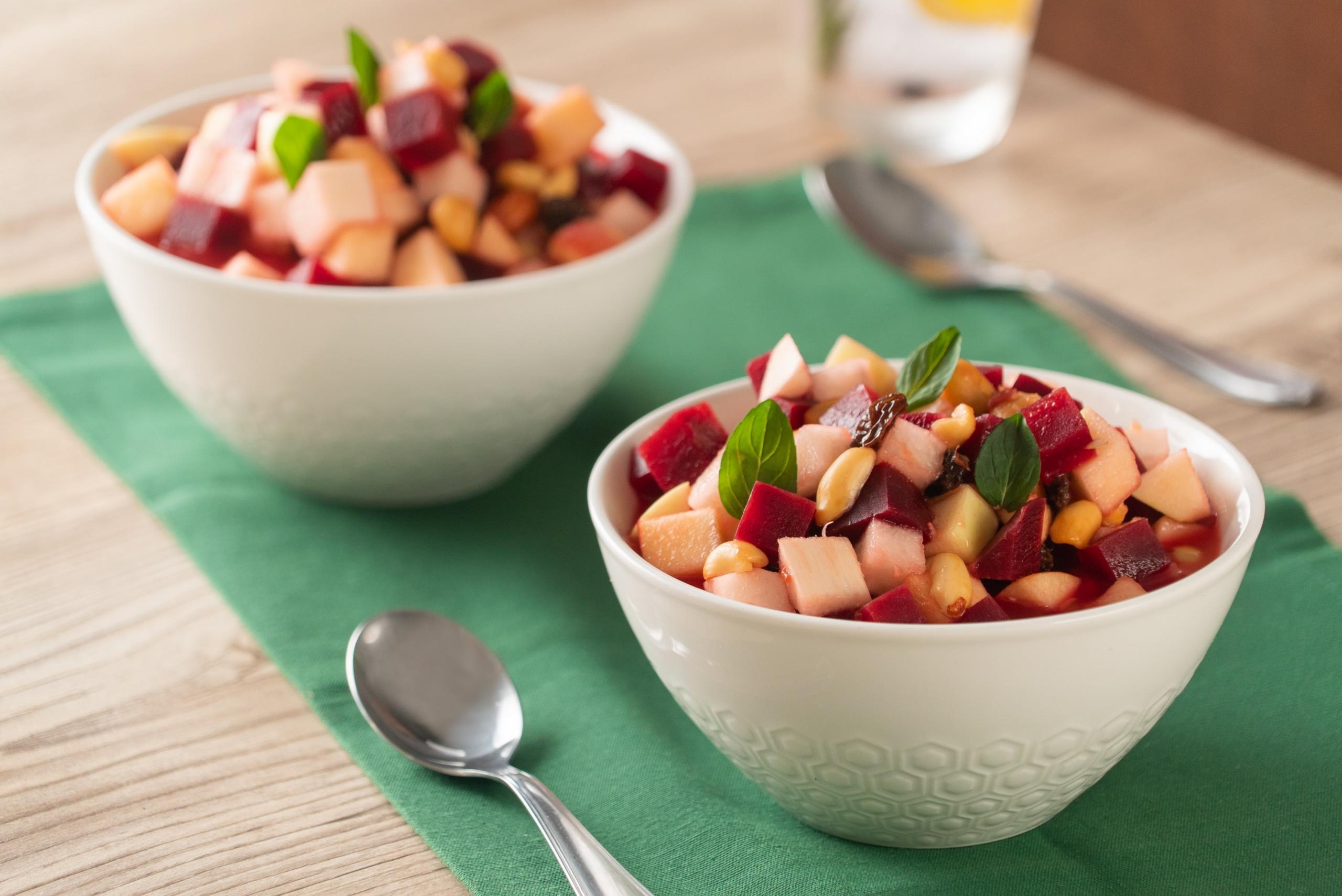 Esta ensalada navideña resalta por los colores festivos verde y rojo. Descubre cómo preparar esta deliciosa receta donde el protagonista es el betabel.