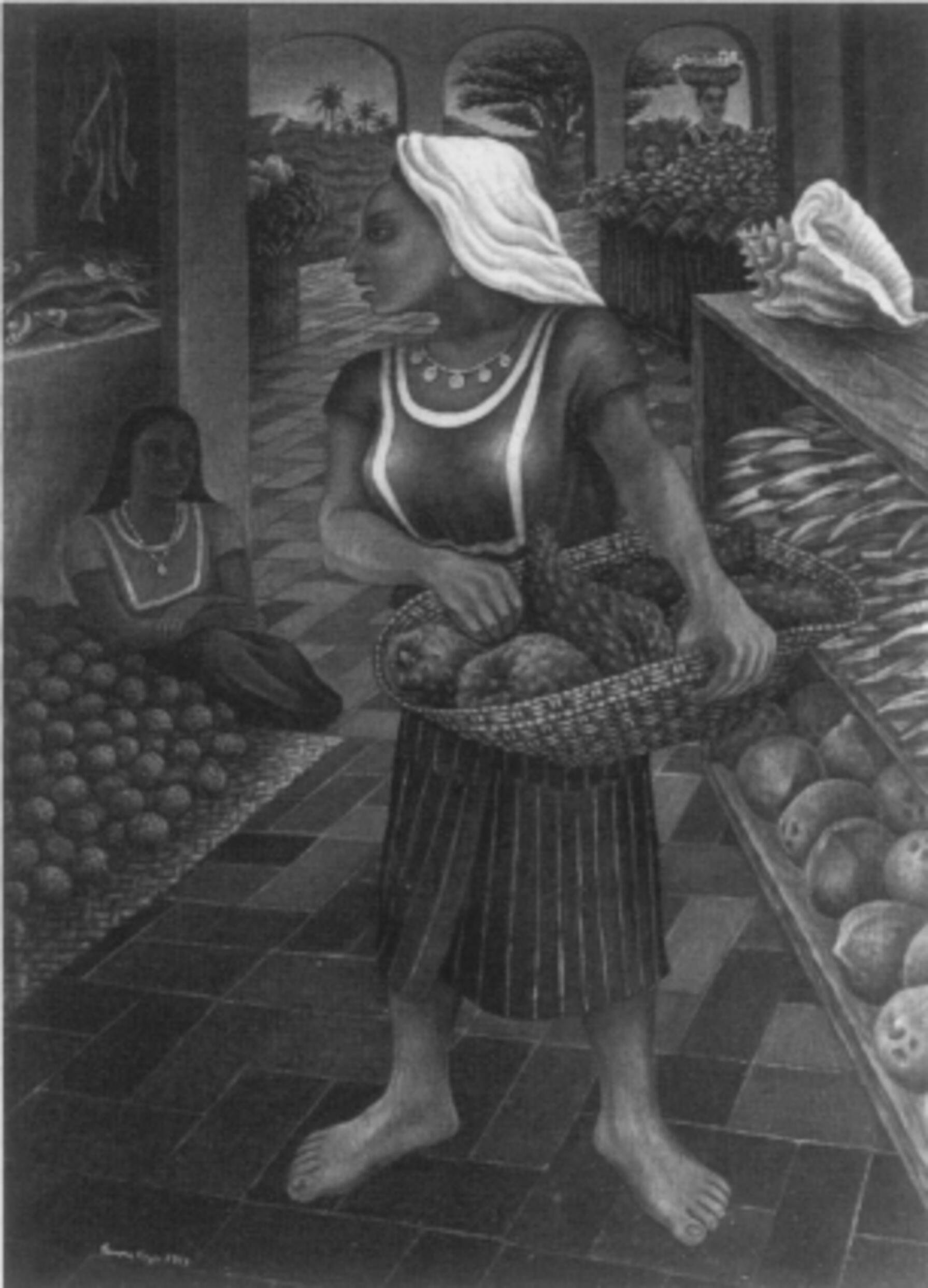 Mercado de Juchitán es una obra vibrante que representa la vida cotidiana de las mujeres indígenas zapotecas en el sur de México.