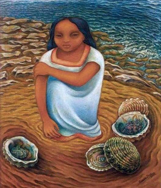 En esta pintura, Reyes retrata a una niña indígena con una mirada profunda y expresiva.