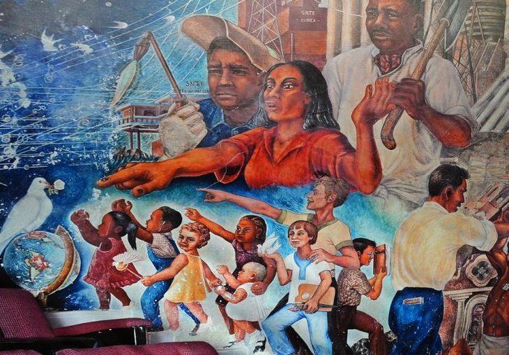 Este mural forma parte de una serie de cuatro murales que se encuentran al interior del antiguo Auditorio 15 de Mayo del SNTE y retrata la importancia de los maestros y maestras en la lucha por la igualdad, libertad y equidad en México.