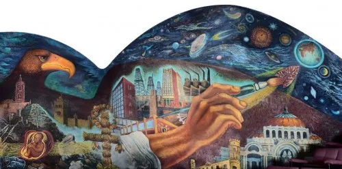 Este hermoso mural nos muestra de manera simbólica el avance del arte y la cultura en México.