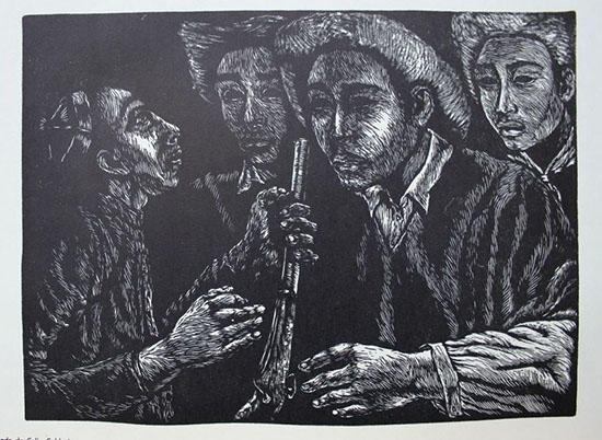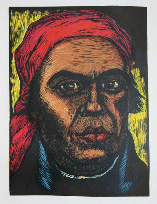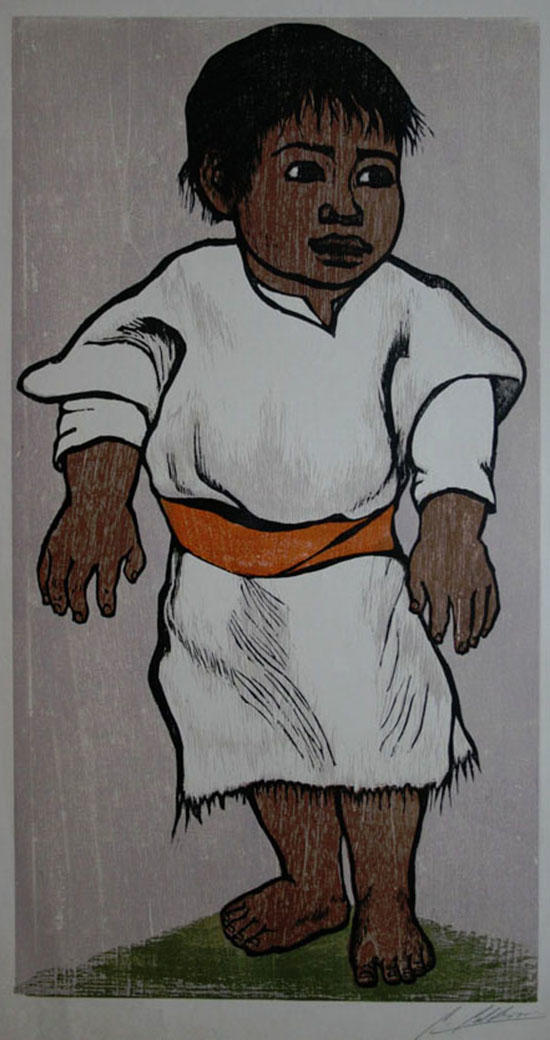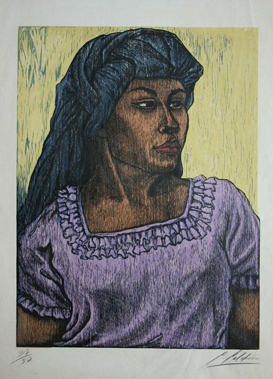 Mujer de Mitla es una obra con la técnica de xilografía.