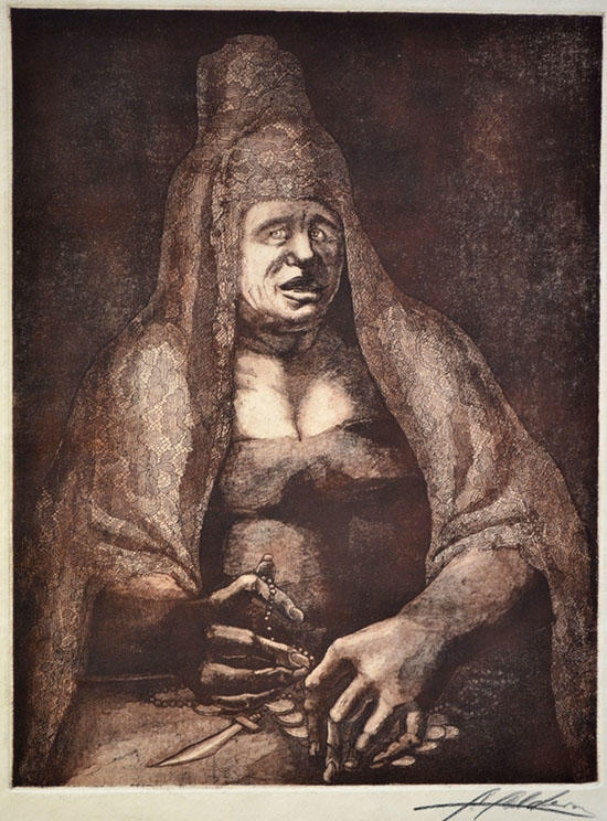 Esta obra realizada con la técnica de grabado, retrata a una de las personas más importantes para Celia. En ella podemos ver a su Tía Matilde, una mujer fuerte que le recordaba a la artista su propia persona.