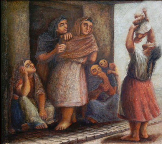Esta obra representa la vida cotidiana de una familia mexicana en el siglo XX, donde son las mujeres quienes se hacen cargo de los niños.