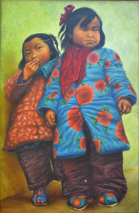 En esta obra, la artista retrató a un par de niñas chinas que muy probablemente conoció durante su visita y exposición en la ciudad de Pekín.