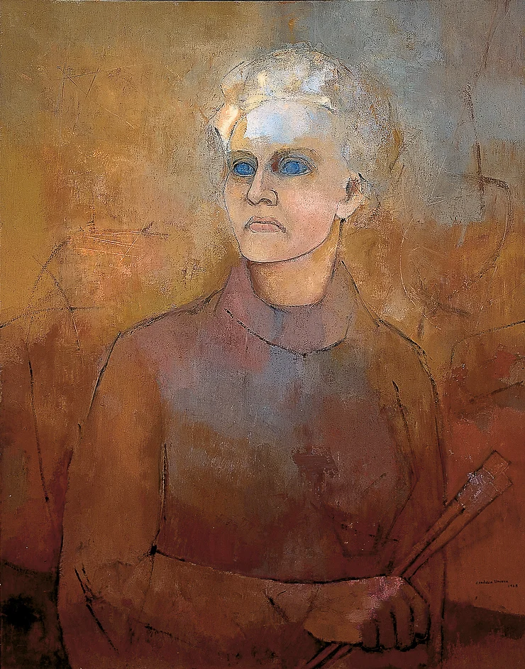 Autorretrato es un retrato de Urueta. La pintura está realizada en un estilo abstracto, pero aún captura la esencia de la artista.