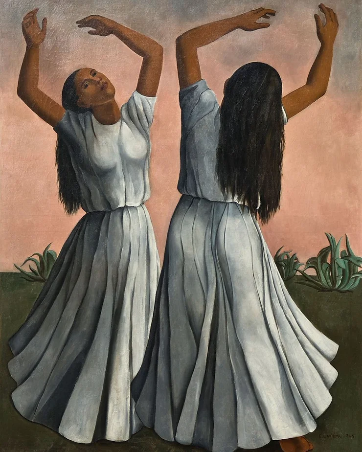 "Mujeres" fue pintado en 1947, pertenece a la colección FEMSA y es una bella representación del indigenismo, un movimiento que Cordelia Urueta siguió, gracias a la influencia de la época y su amistad con Diego Rivera y David Alfaro Siqueiros.