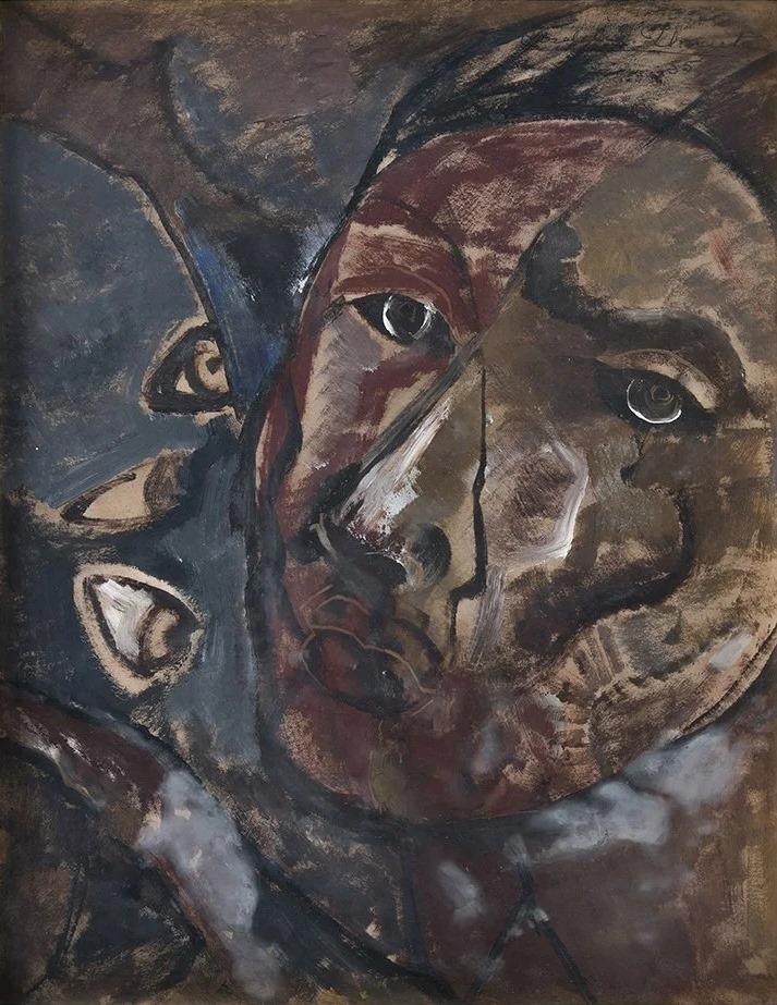 Esta obra está fechada en 1955. Resalta el uso del color y la abstracción, pero aún conserva la referencia al rostro humano.