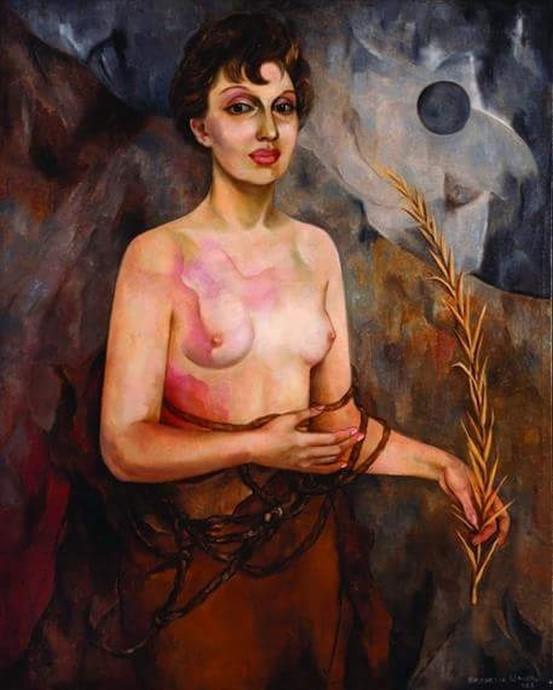 Esta pintura está fechada en 1945, es un óleo sobre lienzo de 127.5 X 97.5 cm.