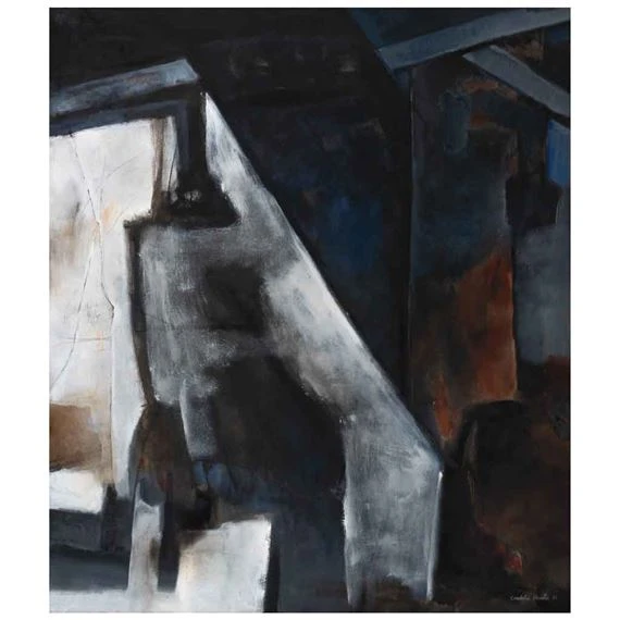 La pintura "La Abrasada" de Cordelia Urueta, realizada en 1959, es una obra de gran expresividad que nos presenta a una mujer en un estado de profunda aflicción.