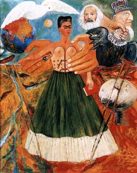 En esta obra, Frida expresa su adhesión al marxismo y su rechazo al imperialismo estadounidense.